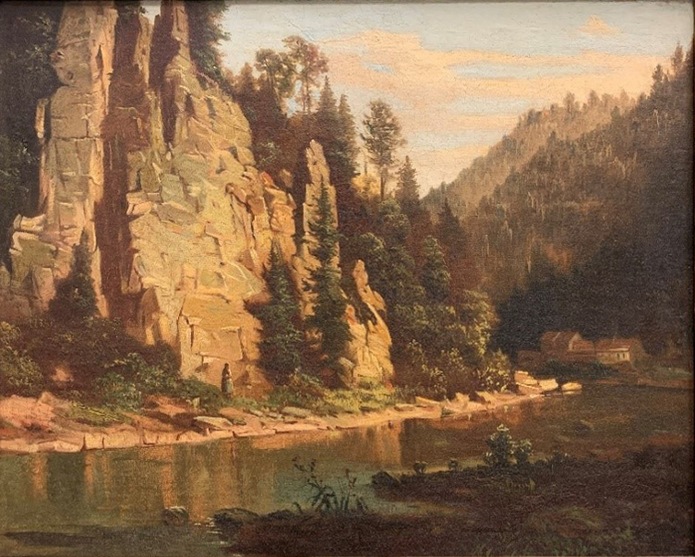 In surveying the racks of paintings in the Museum of Arts and Sciences’ art storage a while back looking for works to include in a possible exhibition on landscape art, I came across a medium-sized scene of a river view focused on a mill in the background. The middle ground of the painting was dominated by a steep granite cliff with the many layers of stone chiseled in an impressive pattern made by nature. The wooded landscape following the curve of the riverbed was rendered in deep, dark tones familiar to 19th-century French landscape art and I was about to guess the artist when I stepped closer and noticed a small brass nameplate nailed to the ornate gold leaf frame. It read “Le Moulin chez Ornans, G. Courbert 1867.” "Of course, it is Courbet!," I said as I also found the artist’s signature in the right corner. One of the great joys of curating a collection as deep as that at MOAS is wonderful surprises like this. MOAS has a landscape painting by one of the most important 19th-century artists, one who is credited by many art historians for breaking artistic boundaries that led to most of the great late 19th-century art movements such as Impressionism, Post-Impressionism, and beyond.