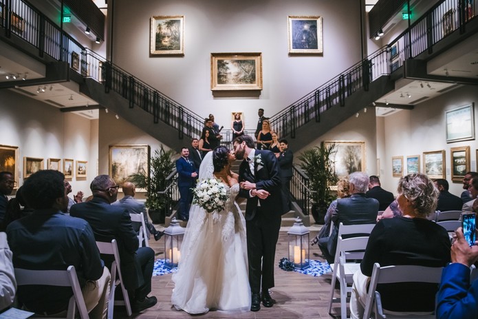 Ave and Patrick were married on October 26, 2019 at the Cici and Hyatt Brown Museum of Art. Their wedding photography really highlights their romantic evening and their starry and celestial theme.