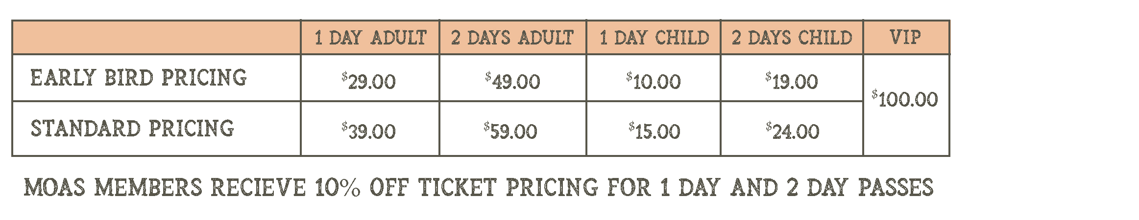 MOAS members receive 10% off HistoryCon ticket pricing (not including VIP tickets). Member discount does not apply to early bird pricing.