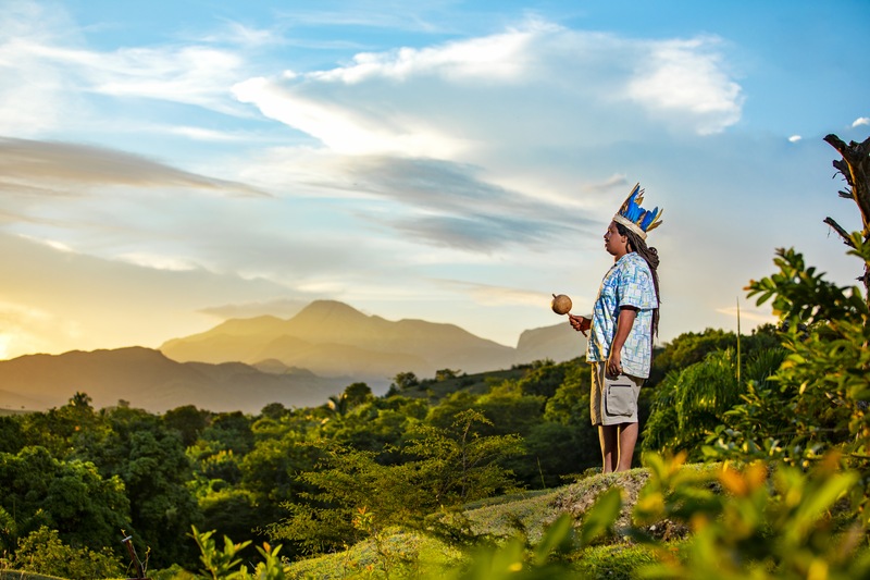 Image caption: Boynayel Mota of the Taino group Yukayeke Kiskeya overlooking the mountains of this indigenous ancestors in Maguana Arriba, Dominican Republic. August 17th, 2021. Image Credit: Photo by Delvin Ortega, Ortega Films, Dominican Republic