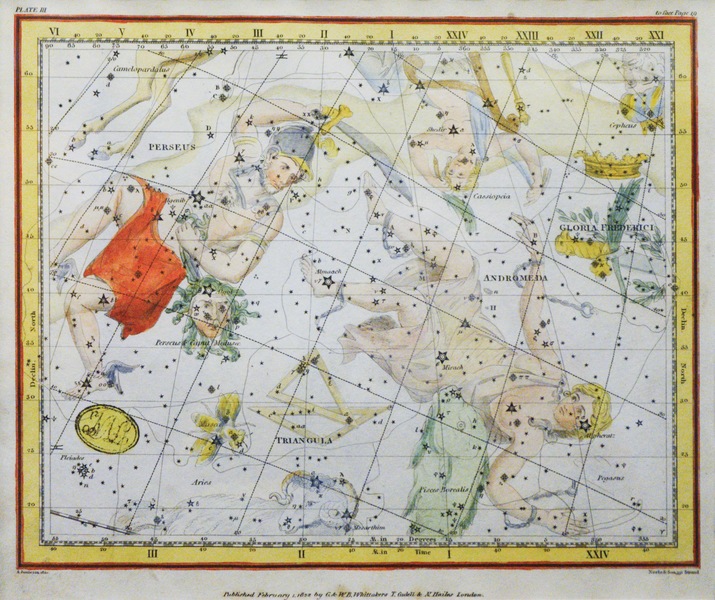Image Credit: Alexander Jemieson (1782-1850), Celestial Chart - Andromeda, Perseus, Triangula. Gift of Malcom C. Babb.