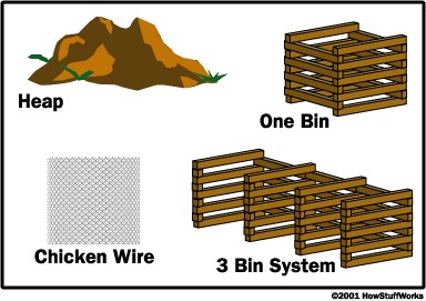 Compost structures range from simple piles to elaborate 3-bin systems. It is all a matter of how active you would like to be with your compost pile. If you are planning on just having a pile and letting nature do its thing, this is called passive composting. It is less efficient and takes longer for the materials to breakdown to be used in your garden or on your lawn. Active composting is when you manage the compost daily and can speed up the decomposition. This process can be achieved with a simple garbage can structure or a tumbler, which you can purchase or build yourself.