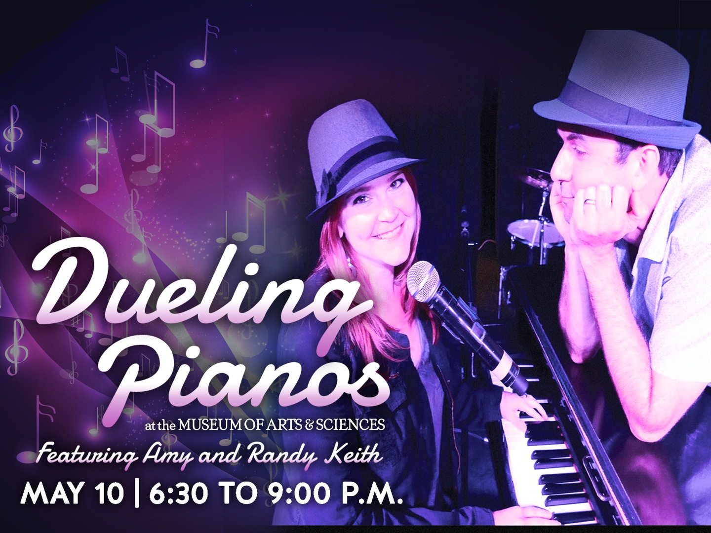Join us in Root Hall and the Root Family Auditorium at MOAS for our first dueling piano show and reception with Amy and Randy Keith of Premier Piano Shows out of Orlando, Florida. Guests can enjoy a pre-show mixer with light appetizers and a cash bar from 6:30 p.m. to 7:00 p.m. followed by a show from 7:00 p.m. to 9:00 p.m. This interactive piano show is sure to create a unique experience for all in attendance. This event is for ages 18 and older.