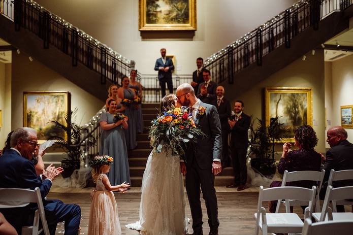 Elise and Patrick were married on December 18, 2021 at the Cici and Hyatt Brown Museum of Art. Their wedding was beautiful and was made complete with live music, homemade pie, and lots of dancing!