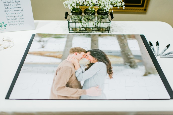 Owen and Elizabeth held their wedding reception at the Cici and Hyatt Brown Museum of Art on November 16, 2019. With so many personal touches including the framed puzzle that Elizabeth put together when Owen first proposed to her, to the personal slideshow led by Elizabeth's father, this reception was all about representing the couple in the most authentic way.
