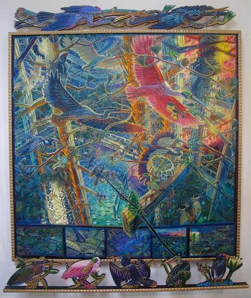 Mark Messersmith was born in Missouri but has called Florida – particularly, Tallahassee – home for years. One of Florida’s most accomplished painters, his style can only be described as ‘fantastic,’ not only for its quality but, also, due to his unique style based on high-keyed, almost fluorescent color combined with densely-packed, dynamic images of the Florida backwoods like you have never seen them before.