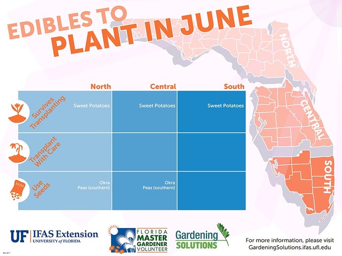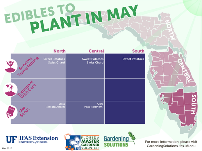 By following these guidelines and knowing when to plant specific items, your garden can thrive. Below is a great infographic on edible plants that are best to start in May and June; whether growing your plants from seeds or transplanting them, it is helpful to know when plants will grow best. The edibles below have different germination and harvesting times, but watching your plants grow is part of the fun of gardening.
