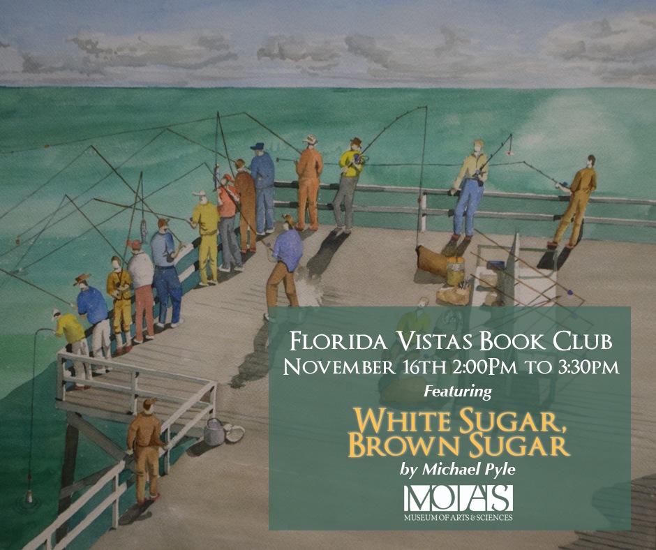 Join us for our monthly Florida history book club at the Cici and Hyatt Brown Museum of Art. White Sugar, Brown Sugar is a novel set in Daytona Beach, Florida. An upper-middle-class white boy from the peninsula, or beachside, of the Inland Waterway, and a black boy of lesser means - who lives west of the railroad tracks where Blacks (who were called Negroes and other names at the time) were required to live, become good friends, in spite of the racial separation in effect in the 60s in the south. Light refreshments will be served. RSVP by calling the Museum at 386-255-0285.