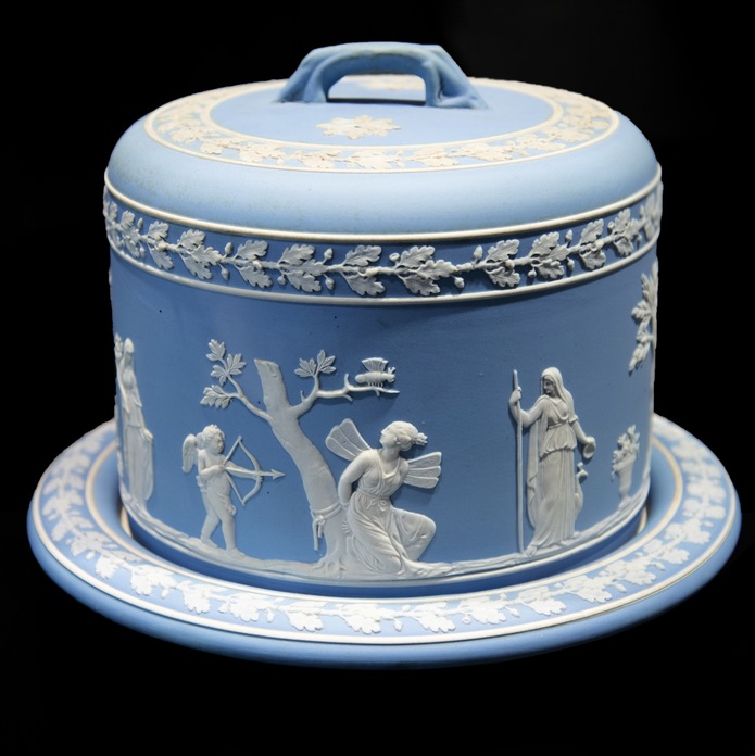 England, 1775: Wedgwood Pottery Company has one of the most recognizable styles in the collection, featuring a Cheese Dome in the iconic “Wedgwood Blue.”[3] This type of ceramic is known as Jasperware, with the particular piece dating back to 1775, Etruria, England, one year after Josiah Wedgwood discovered how to produce Jasperware.[4] Wedgwood was founded by Josiah Wedgwood and Sons ca. 1759.[5] Over his lifetime, Josiah invented three kinds of pottery that would rocket his company to fame: Queen’s Ware, Basalt, and Jasperware. In Barlaston, England, there is a museum dedicated to Wedgwood products throughout the centuries. Through the years the company has teamed up with famous artists, currently, Wedgwood works with Vera Wang.