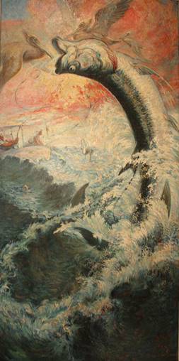 This exhibition emphasizes Florida's reputation for being one of the greatest sport fishing areas in the world. From locals with simple cane poles to celebrities on yachts decked out for challenging sailfish and tarpon. Included are works by A.E. Backus (an unusual painting by him which includes a real mounted sailfish), Maitland artist, Jules Andre Smith's vision of fishing for dinner, Waldo Pierce's self-portrait of shark fishing with his close friend Ernest Hemingway, fishing camps including David Burliuk's color interpretations, plus underwater scenes and ship portraits of luxury fishing vessels. Among other works seen for the first time is the important and large (8' x 4') Strife of the Sea - a work by the noted central Florida artist and architect, Sam Stoltz. It was part of the Chicago Century of Progress Exposition, 1933-34.