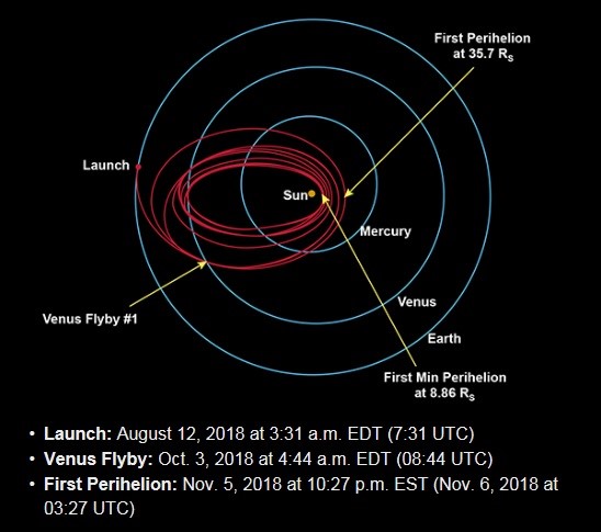 By giving Venus some of its momentum, the probe’s orbit will gradually shrink, resulting in a closest pass of only 3.83 million miles from the Sun. With the Earth at a distance of about 93 million miles from the Sun, the probe will be only 4% of that distance away from the Sun’s surface.