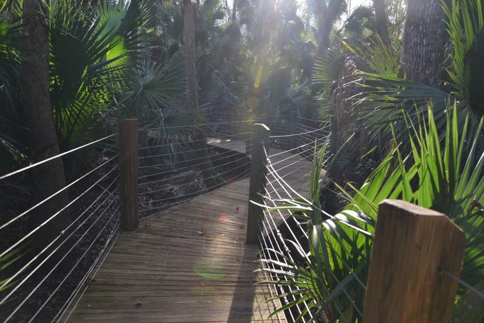 Tuscawilla Nature preserve features a brief boardwalk hike through one of the few remaining hydric hammocks in Florida. This trail provides a distinctive outdoor experience at MOAS, with the chance to observe migratory birds in the late fall/early winter and learn about exotic species that thrive in this unique environment. The education complex contains over 1/2 mile of boardwalks and nature trails as well as an education center and interactive learning stations.