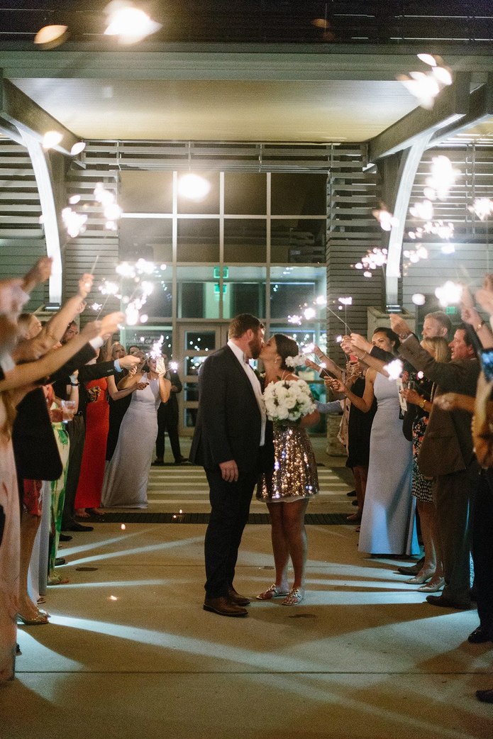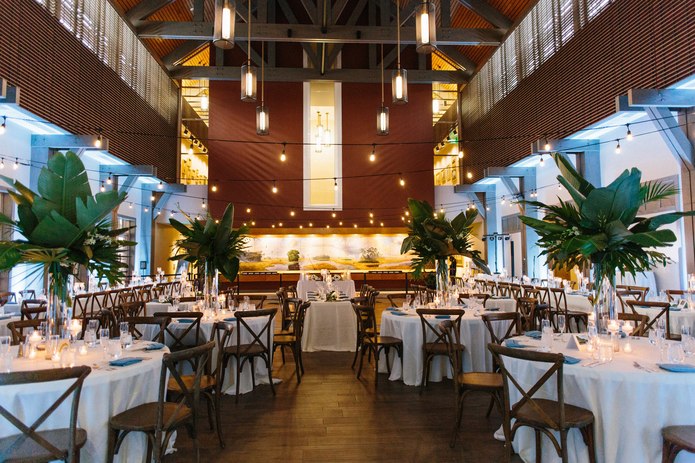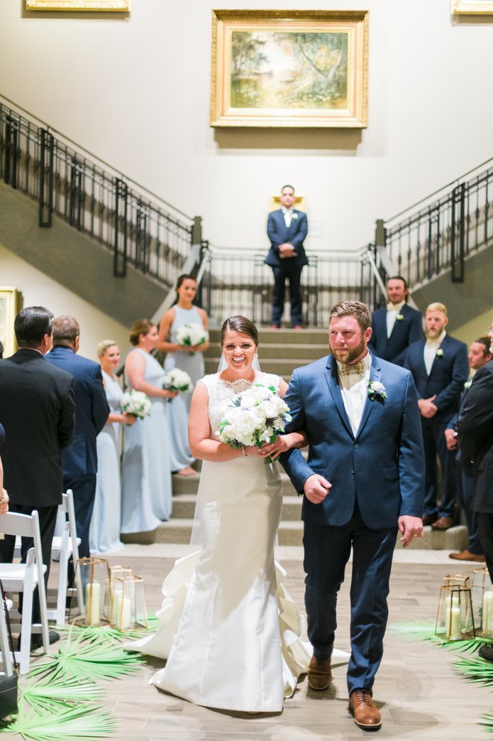 Isaac and Madison held their wedding ceremony and reception at the Cici and Hyatt Brown Museum of Art on May 12, 2018. Their beautiful wedding had a tropical feel, market lights, and a sparkler send-off. The festivities spanned throughout the whole museum utlizing the permanent gallery, courtyard, and main hall.