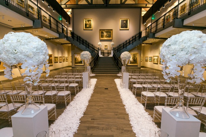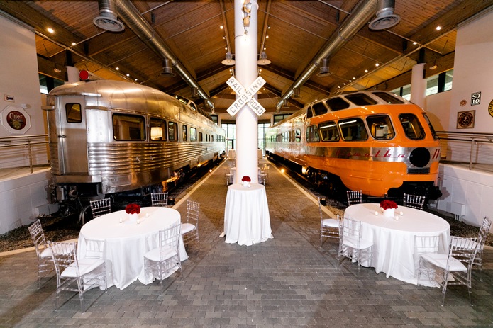 Jeffery and Joslyn utilized both venues for their elegant SURPRISE wedding on January 19, 2020. This wedding involved a truly talented vendor team that collaborated to create a romantic, glamorous and truly transformative wedding celebration. The couple had their ceremony in the Permanent Gallery at the Cici & Hyatt Brown Museum of Art, followed by Cocktail Hour in the Root Family Train Station, and Reception in Root Hall. Every detail was meticulously planned out and the end result was a truly enchanting wedding.