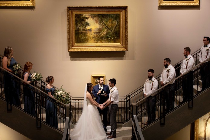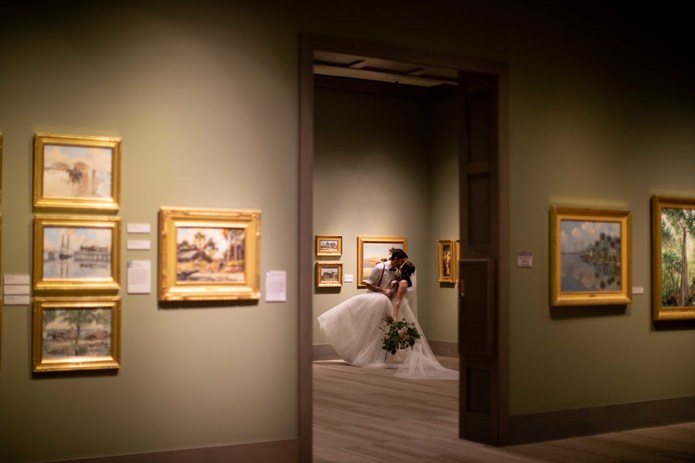 Tyler and Jessica were married at the Cici and Hyatt Brown Museum of Art at MOAS on November 28, 2020. The romantic backdrop of the Museum's galleries led to some beautiful photos of the couple and detail shots.