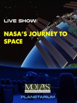 Take a journey with us into space as we embark on a historic journey through NASA's storied human spaceflight program in this live planetarium show. As we fly through our digital universe, we will take a glimpse of what the first American astronauts saw, the ambitious missions to the moon, and the reusable era of the Space Shuttle that eventually led to the International Space Station. For a look into the future, we will end the show with a ten minute preview of NASA's massive new rocket that may one day take astronauts to Mars.