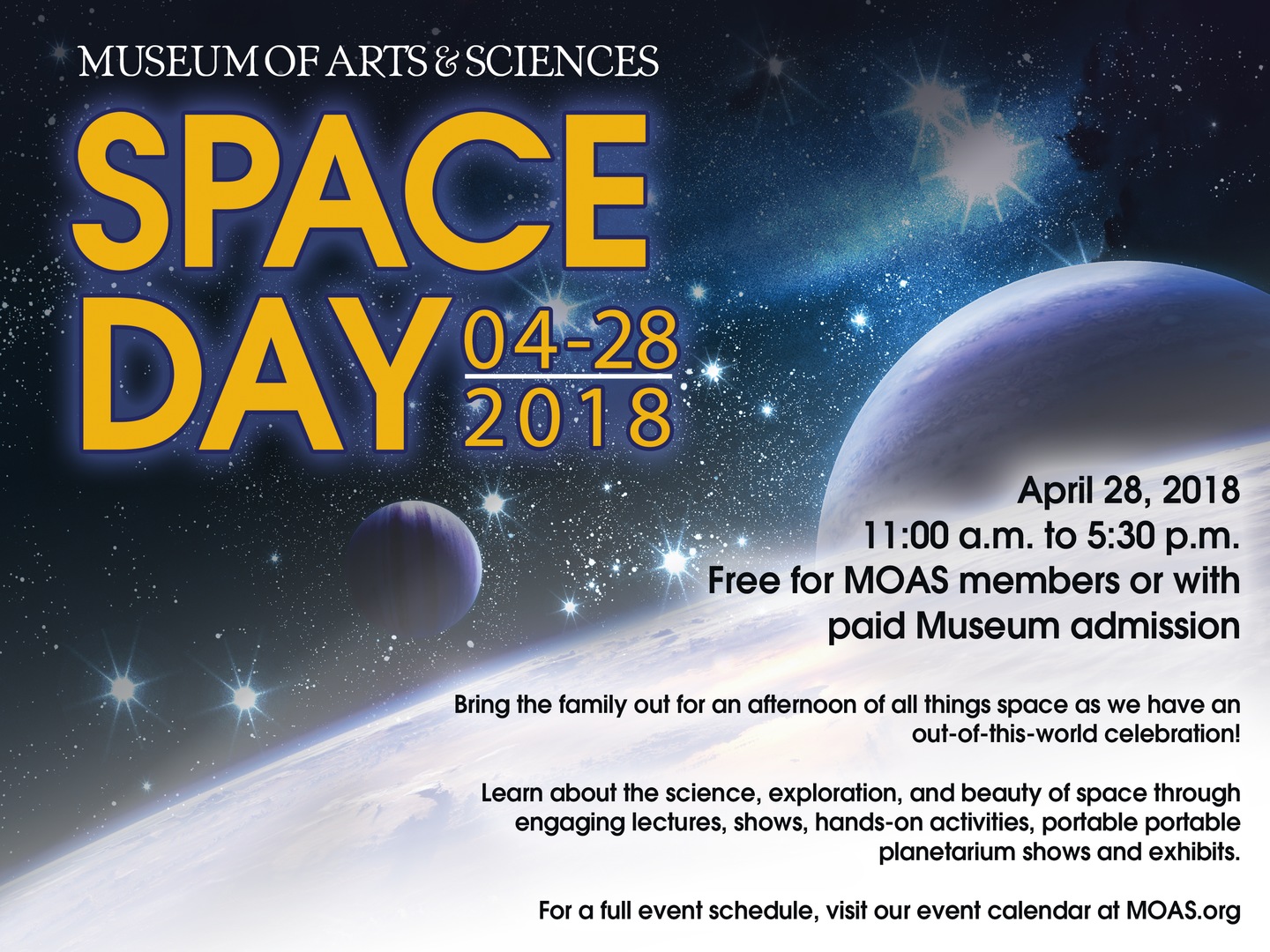 Join us for our 4th annual MOAS Space Day, where we celebrate all things space in an engaging and interactive environment for the whole family. You will learn about the science, exploration, and beauty of space through exciting lectures, shows in our main planetarium and portable planetarium, and hands-on activities. There will be displays from ERAU's ERFSEDS Rocket Club, Amateur Astronomy Club, and Astronomy Professors from the Physical Sciences Department throughout the Museum. The Kennedy Space Center Visitor Complex will also be bringing a replica of the Lunar Rover to be setup in the entrance courtyard. We cannot wait to see you for an out-of-this-world event.