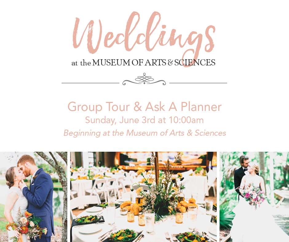 RSVP Today and join in a free, specialized group tour of the wedding venues at the Museum of Arts & Sciences with premier wedding and event planner, Thao Duong from Cherry Blossom Events. The group tour will begin promptly at 10:00am at the Museum of Arts & Sciences and will finish by 12:00pm at the Cici and Hyatt Brown Museum of Art. Enjoy a tour of all the beautiful rental spaces with MOAS Rental Manager, Tori Carta. Event specialist, Thao Duong, will also be available to offer her insight on the latest trends, best practices, and expertise in the industry. Light refreshments included.