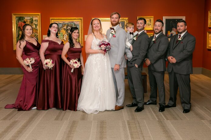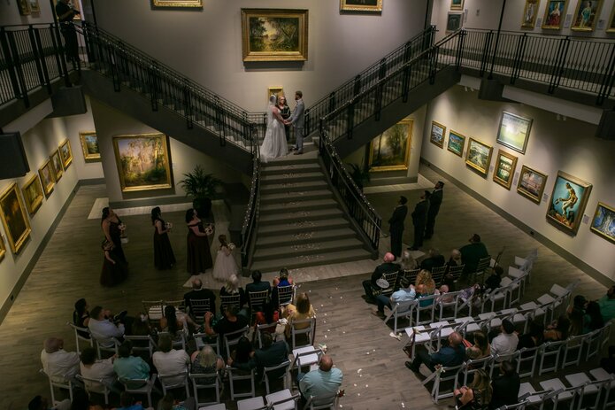 Megan and Daniel hosted their wedding and reception at the Cici and Hyatt Brown Museum of Art on June 18, 2022. They took advantage of the full museum and had beautiful photos taken throughout.