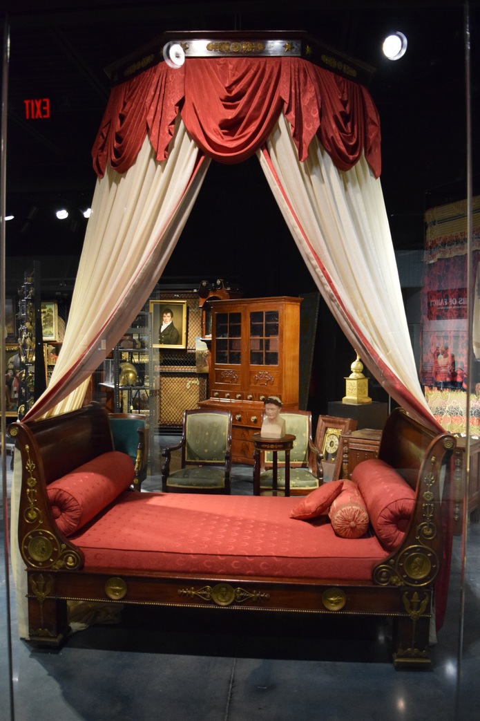 The Helene B. Roberson Visible Storage Building is a must-see walk through human history. Upon entering the amazing collections, your eye is caught by a fancy looking bed. This is no ordinary piece of furniture as it once belonged to Emperor Napoleon Bonaparte and resided in his private personal chambers at the Palace of Versailles. The classic Empire style of this block-like bed is deeply rooted in the neo-classical fashion that was so en vogue during Napoleon's reign. The bed dates to c. 1810 and would have been pushed up against a wall with drapes dangling down each side. This Empire style bed is the forerunner of the American sleigh bed common today. How did the Museum acquire this piece? The bed was sold at auction to New York newspaper magnate, William Randolph Hurst, and then auctioned years later by Sotheby’s and won by Kenneth Dow. Kenneth loved all things French, and he eventually donated it the Museum in 1989.