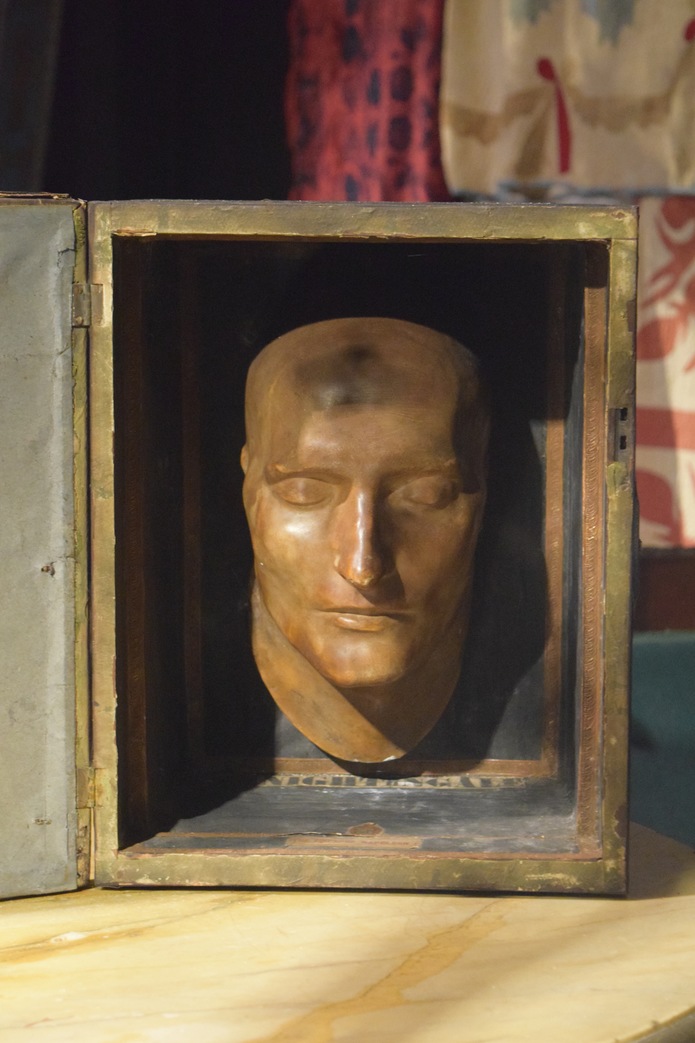 Another amazing treasure sitting next to Napoleon's bed is a rare death mask of the famous general. If you want to see what Emperor Napoleon really looked like, you can peer inside a non-descript box and see the plaster death mask of the famous emperor created two days after his passing. Napoleon died May 7, 1821, at age 51 on the Island of St. Helena with doctors from the United Kingdom and France in attendance. During the time of Napoleon Bonaparte, it was customary to cast a death mask of a great leader who had recently died. A mixture of wax or plaster was carefully placed over Napoleon’s face and removed after the form had hardened. From this impression, subsequent copies could be cast. His eyes are closed, lips slightly parted, and his shaven head is tilted backward, resting on a pillow garnished with a tassel at each corner. There are only a handful of these death masks known in the world.