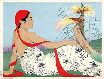 Les Paradisiers Menado, Celebes, 1937, woodblock on paper