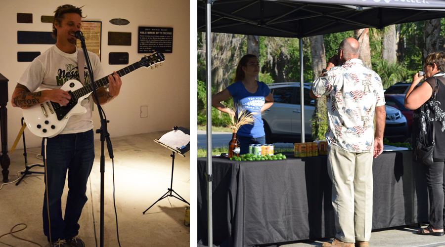 As 6:00 p.m. arrived, guests started to spill into the sold out event. Live guitar music by Frankie Guinther flooded the Root Family Train Station and really made the event feel extra special. A variety of craft breweries from around Volusia County including Tomoka Brewery, Persimmon Hollow, and Central 28 Beer Company was positioned in and outside of the Train Station, providing tastings and a brief history on each of their craft brews.