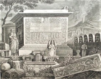 Joseph Mallard William Turner (1775-1851), with a romantic watercolor of Pompeii; Luigi Rossini (1780-1857), with a series of images focused on Pompeii in Southern Italy which had been buried by an eruption of Vesuvius in 79 A.D. Also included, examples of Piranesi's etched 18th century Parthenon Suite.