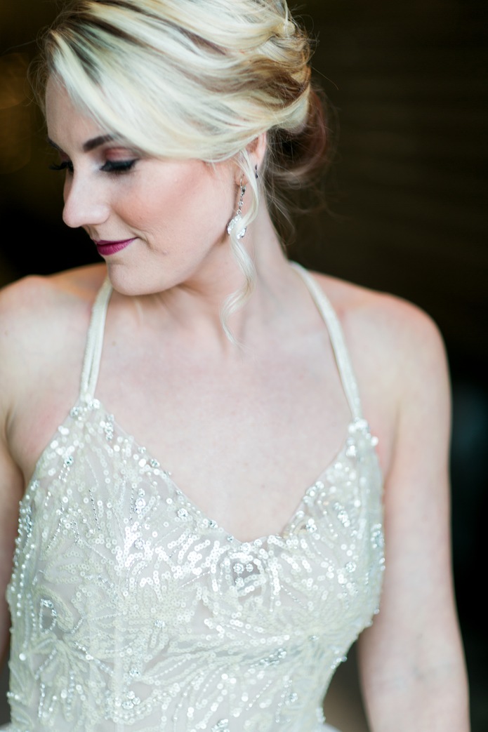 Amanda of Hopcraft & Co. completes the look with a modern fresh face and a sophisticated, yet soft, updo. Amanda’s experience in the industry is unparalleled and will deliver an absolute stunning and cohesive look for your perfect wedding day. Just look at that dash of deep rose for the perfect, kissable bridal lips!