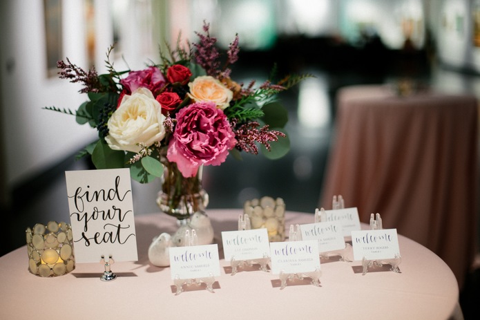 Noted Paperie created delicate calligraphy table numbers and seating cards which were a whimsical, yet romantic way to welcome guests to their seats. They whisper of a night that will be filled with romance and truly embody the attention to detail so presently displayed in artwork around the Museum.