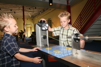This exhibit challenges you to make a rapidly rotating string appear to “freeze” in the light of a strobe light. Guests will manipulate the length and speed of the string while adjusting the speed of the flashing light to create this optical phenomenon. While attempting this feat, you are sure to see many different visual patterns.