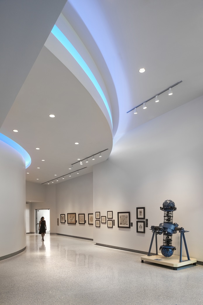 The new West Wing gallery space more effectively displays the Museum's permanent collection with more useable wall and floor space than the previous structure's inefficient floor plan. The new wing unites disparate concepts of the 1960s and 1990s architecture that remained raised the building above the flood zone and healed the Museum together in a single, unified statement. The spirit of the new Museum wing reinforces the interconnectedness of the arts, sciences, and history through the infusion of iconic form, connectivity, and accessibility.