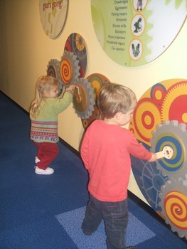 Get all geared up to turn a crank and move large and small inter-meshed colorful gears. Made of durable foam and safe for the smallest of fingers, this exhibit allows our guests to experience the movement of gears in a cause and effect fashion. This also provides a connection with every day gears like clocks, bikes, engines and more.