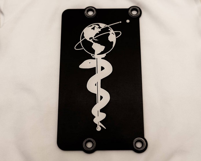 Attached to the Perseverance rover, this 3-by-5-inch aluminum plate commemorates the impact of the COVID-19 pandemic and pays tribute to the perseverance of healthcare workers around the world. Image credit: NASA/JPL-Caltech
