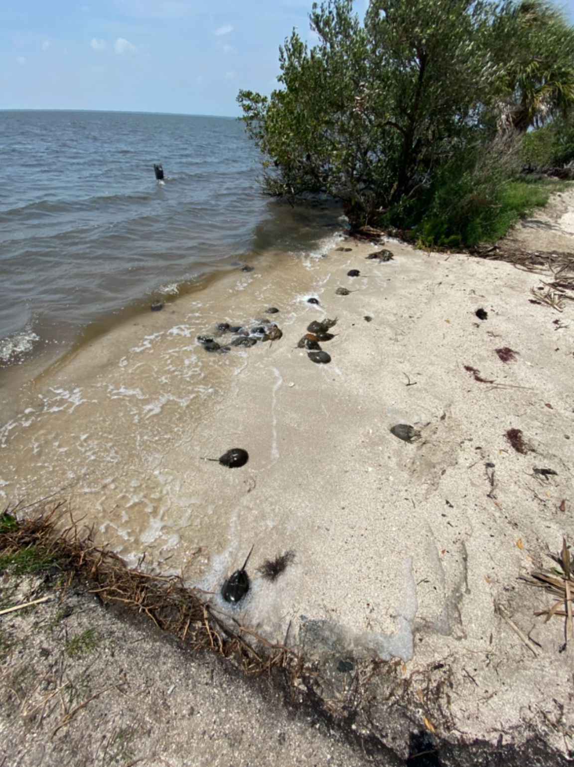 Horseshoe crabs mating, Mosquito Lagoon. Photo by Kelsey Hansen.